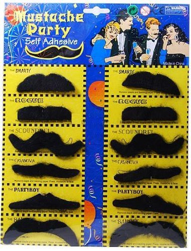 12 Fake Moustaches - Assorted Shapes and Sizes! Costume Fun Mustache. Because the prospects say that